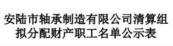 安陆市轴承制造有限公司清算组拟分配财产职工名单公示表